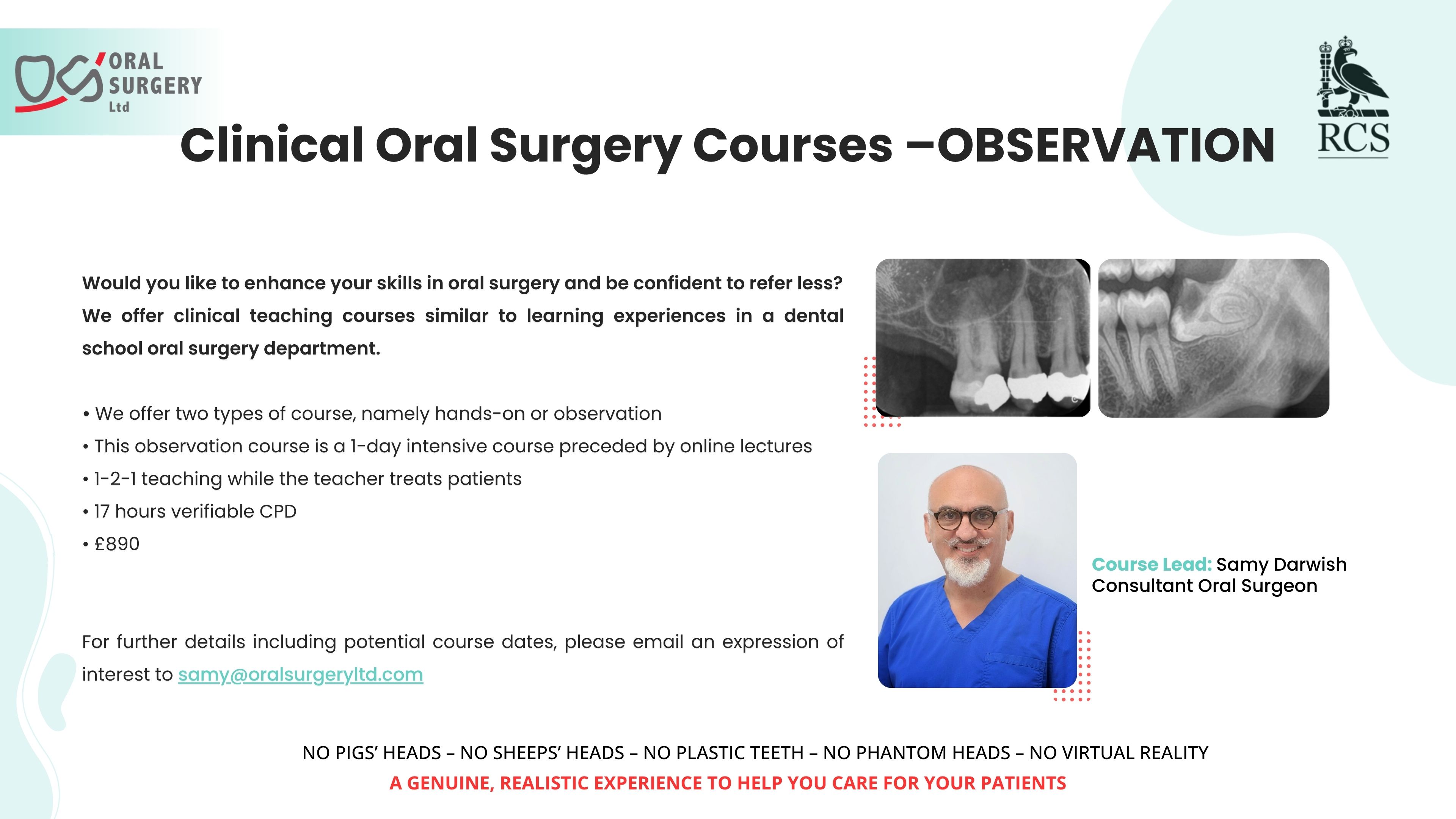 Oral Surgery Ltd runs a hands-on course for dentists. Keep checking this page for details or contact us here to join our mailing list